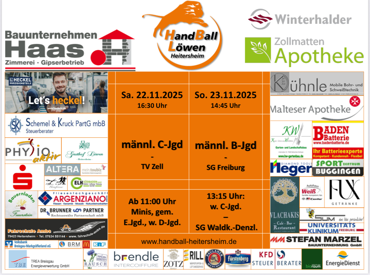 Es spielten für die HandBall Löwen Heitersheim (Tore): Moritz Bermeitinger (15), Veit Bermeitinger (6), Corvin Schmälzle (2), Florian Haag (1), Sebastian Loose (1), Sebastian Frederic Schnitzer (1), Marius Sonst (1) Jonas Kruck, Philip Leslie, Niklas Meyer, Frederik Schüle (beide Tor). Offizielle: Axel Bermeitinger, Nico Dobronn, Michael Sommerkorn